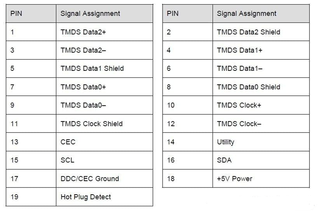 - 19는 연결을 설정하는 데 사용되는 HPD 핀입니다.