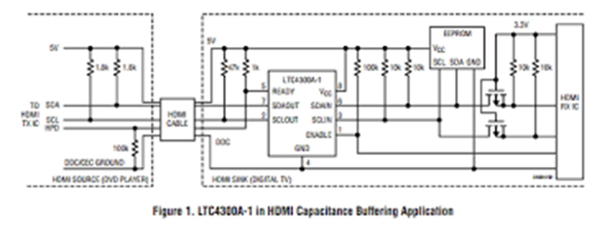 HDMI ROM의 I2C Address는 항상 0xA0가 됩니다. 회로설계 중 DDC포트에는 저항 연결이 필요합니다. 저항은 최소 1.3K가 되어야 합니다.