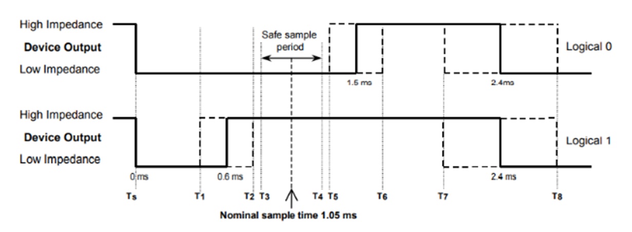 만일 신호가 high를 유지한 후 low로 내려오지 않는다면, 신호 데이터가 들어오지 않았다는 것을 의미합니다.