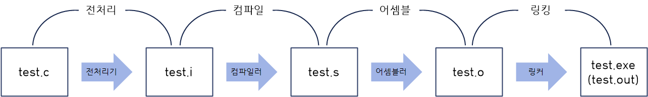 참고로 전처리 파일과 컴파일 파일은 실제로 눈에 보이게 생성되지는 않는다.