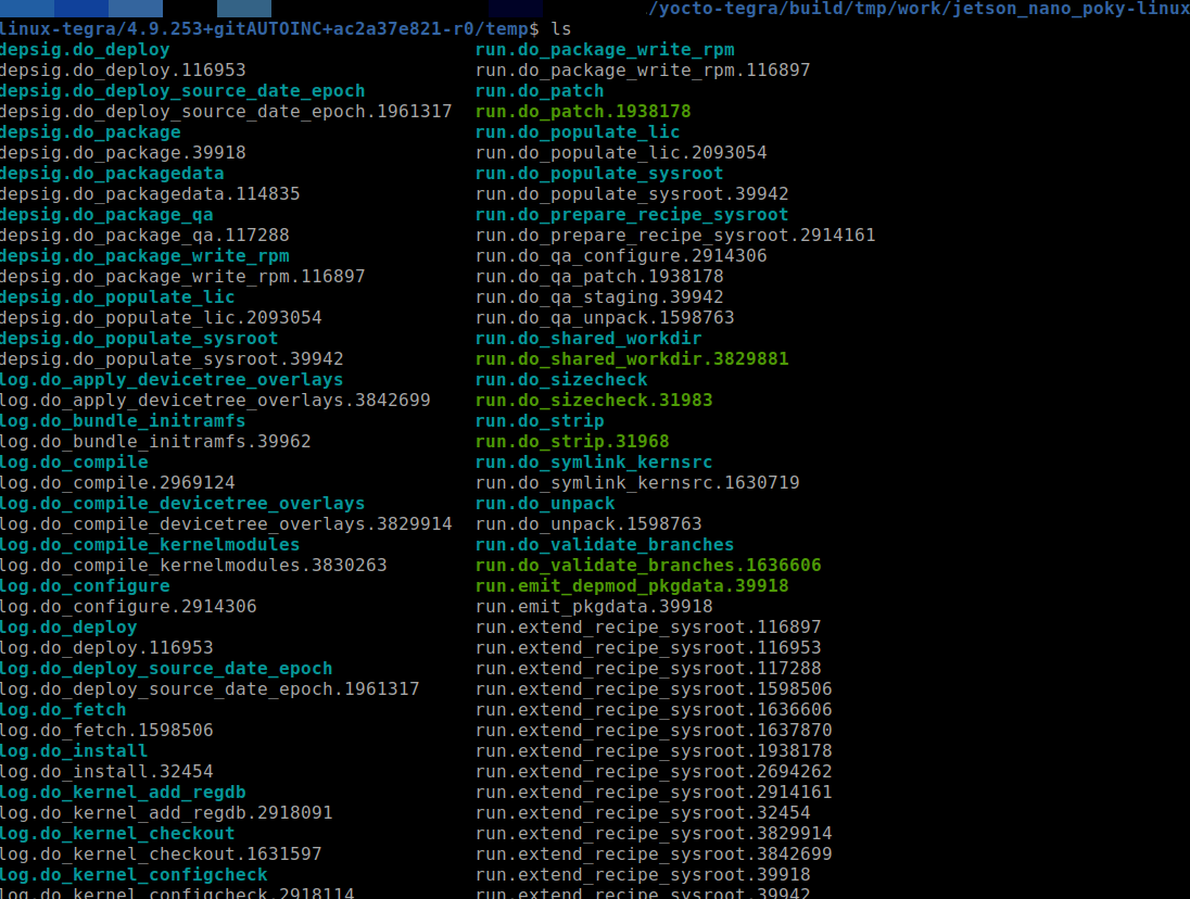 ex) jetson-nano의 kernel경로 : tmp/work/jetson_nano_poky-linux/linux-tegra/4.9.253+gitAUTOINC+ac2a37e821-r0